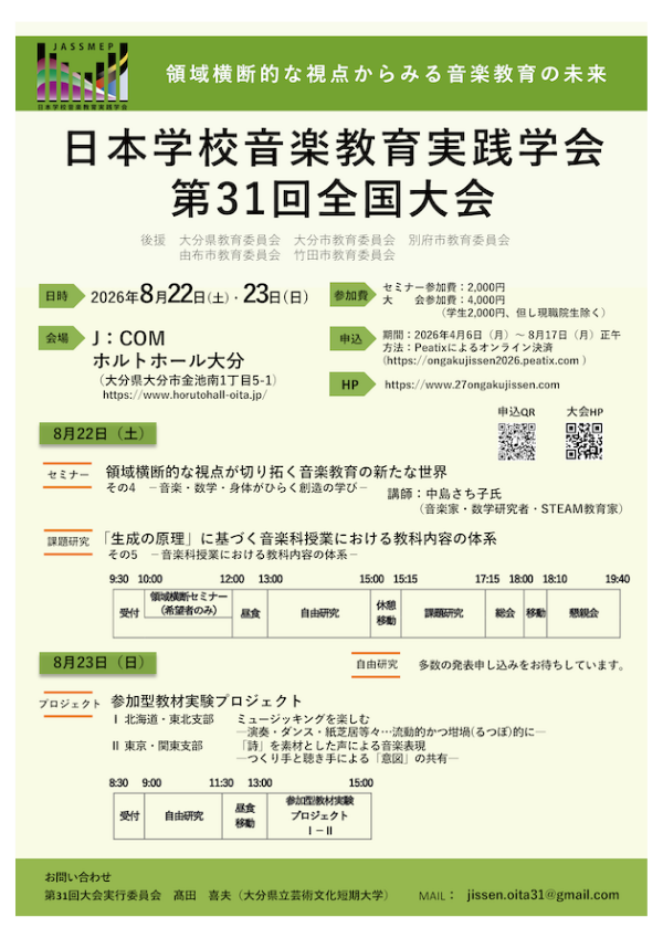 2026年2月21日(土)第3回音楽教育実践学フォーラムを開催いたします。